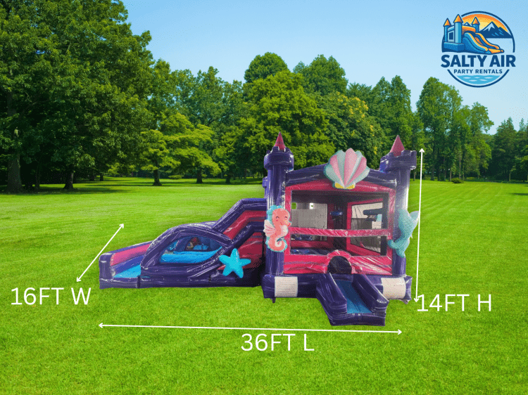 The Mermaid Combo Bounce House is perfect for under-the-sea celebrations. With a colorful mermaid theme and plenty of space to bounce, climb, and slide, it’s ideal for birthday parties and summer events.